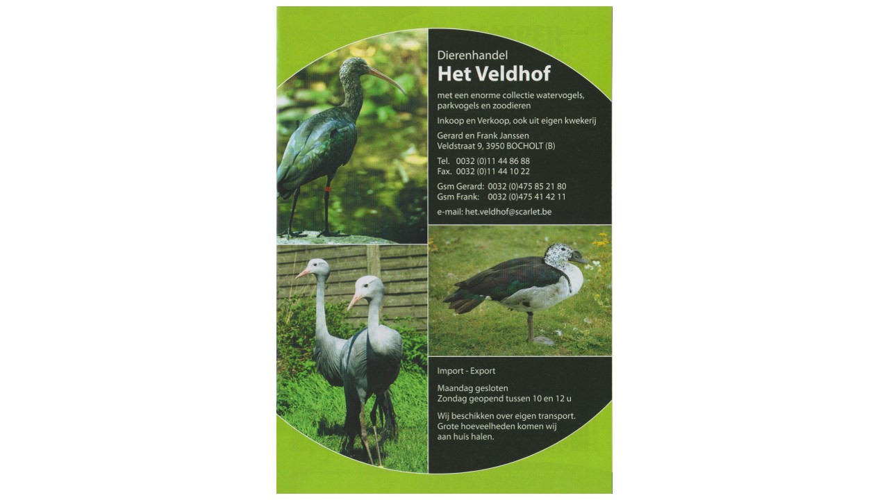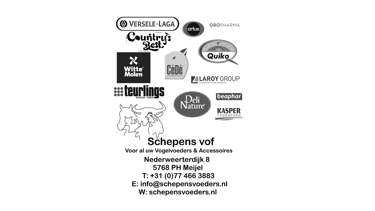 Watervogels, Parkvogels, kleine siervogels, sierduiven, oorspronkelijke duiven, konijnen, hoender en dwerghoenders, cavia's en kleine knagers.
